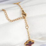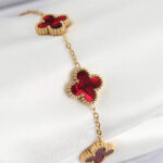 316L Çelik Sedefli Kırmızı Gold Renk Yonca Kadın Bileklik