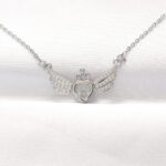 316L Çelik Silver Renk Zirkon Taşlı Kalpli Kanat Kolye