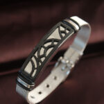 316L Çelik Siyah Desenli Ayarlanabilir Hasır Kordonlu Bileklik
