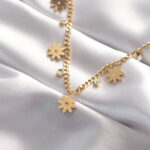 316L Çelik Taşlı Gold Renk Çoklu Çiçek Kolye