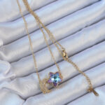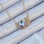 316L Çelik Zincir Altın Renk Ay Tasarımlı Renkli Zirkon Taşlı Çiçek Kolye