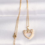 316L Çelik Zincir Altın Renk İnci Taş Detay Zirkon Taşlı Kalp Kolye