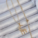 316L Çelik Zincir Altın Renk İşlemeli Zirkon Taşlı Ay Kolye
