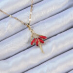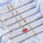 316L Çelik Zincir Altın Renk Kırmızı Etekli Zirkon Taşlı Balerin Kolye