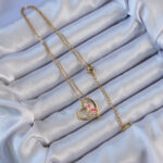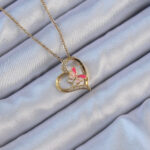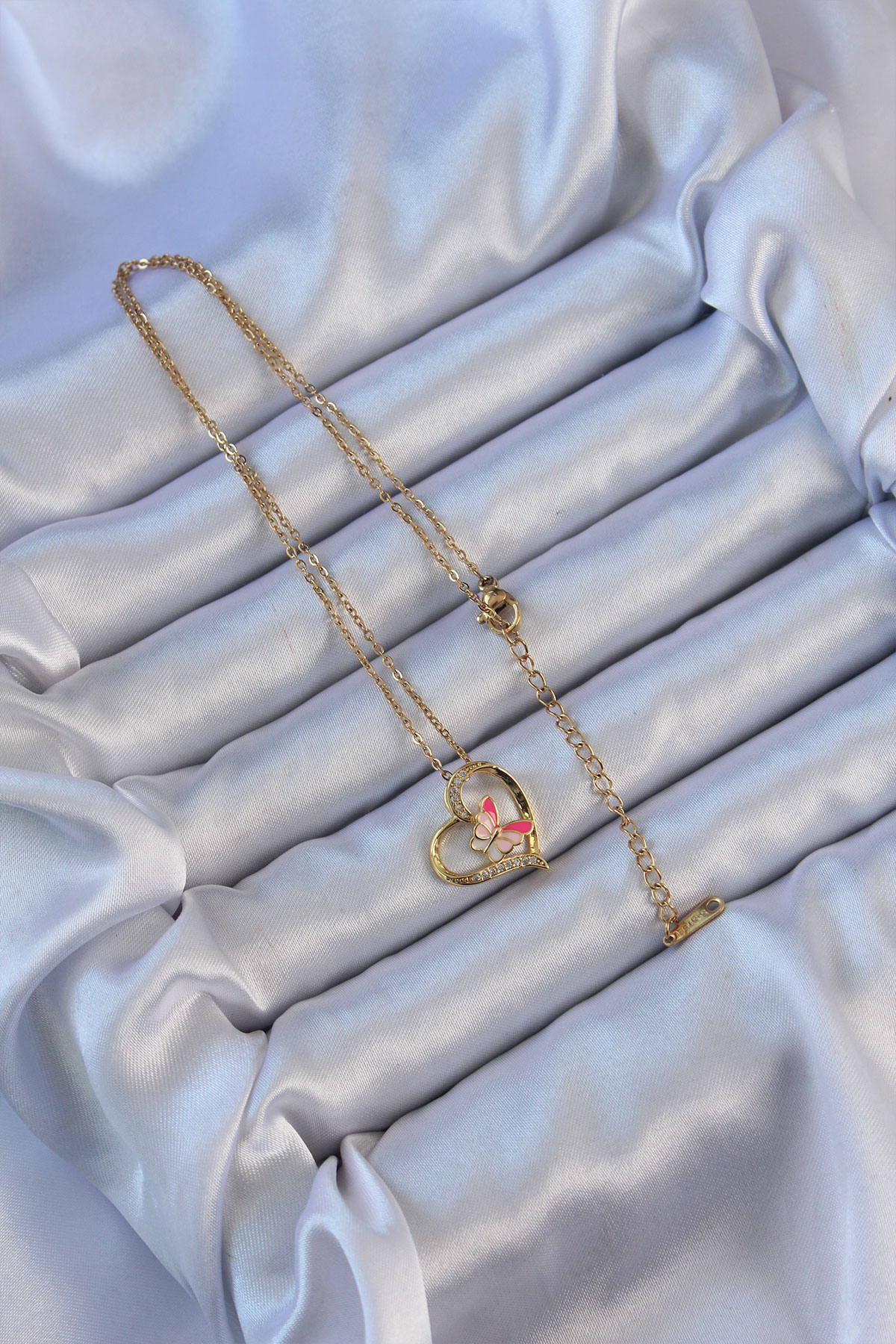 316L Çelik Zincir Altın Renk Mineli Kelebek Figür Zirkon Taşlı Kalp Kolye