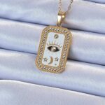 316L Çelik Zincir Altın Renk Mineli Zirkon Taşlı Göz Figür Tarot Kolye