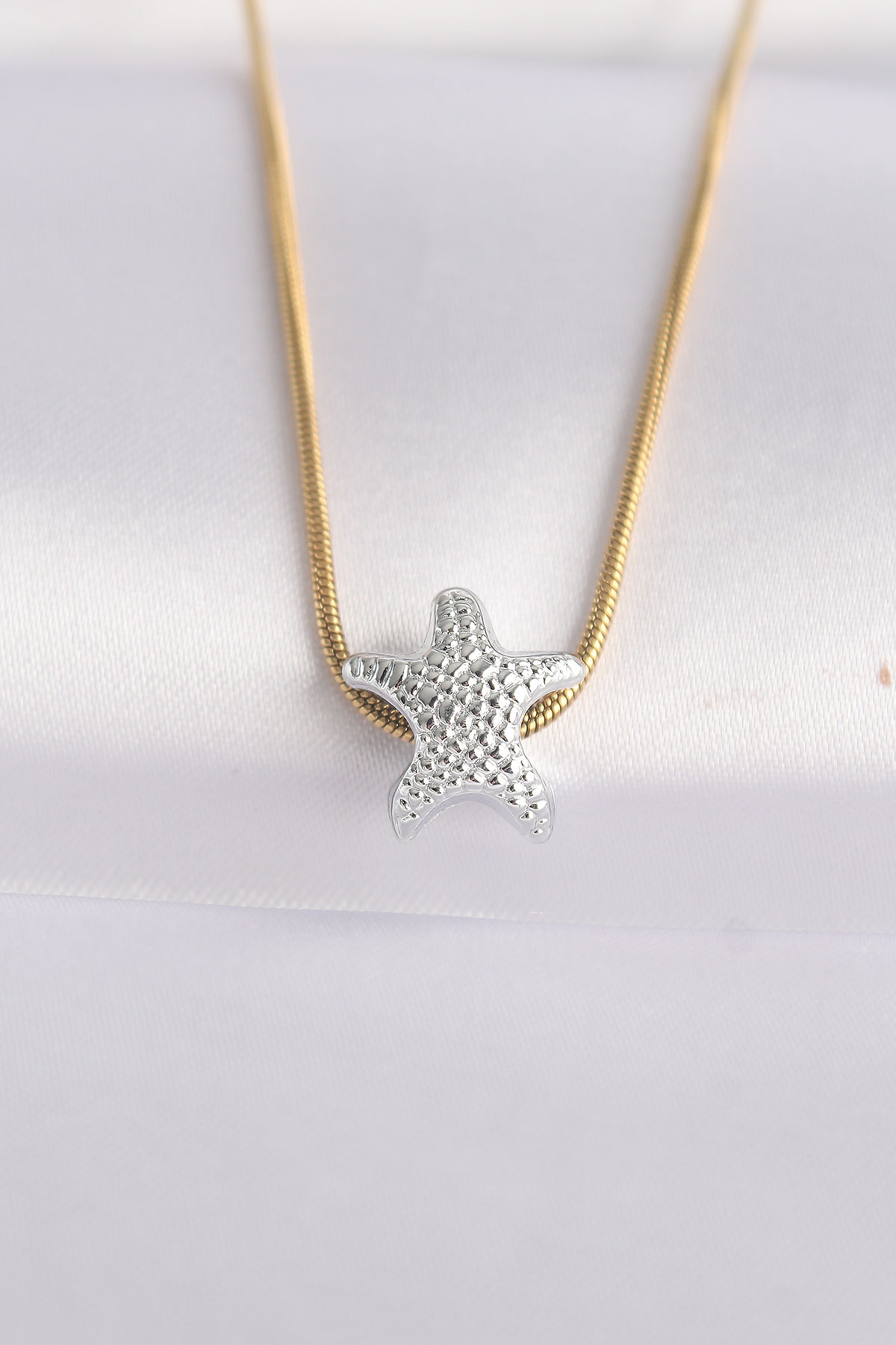 316L Çelik Zincir Altın Renk Zincirli Gümüş Renk Deniz Yıldızı Tasarımlı Kolye