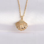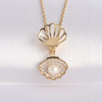 316L Çelik Zincir Altın Renk Zirkon Taşlı İnci Detay İstiridye Kolye
