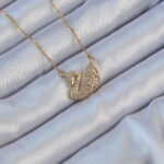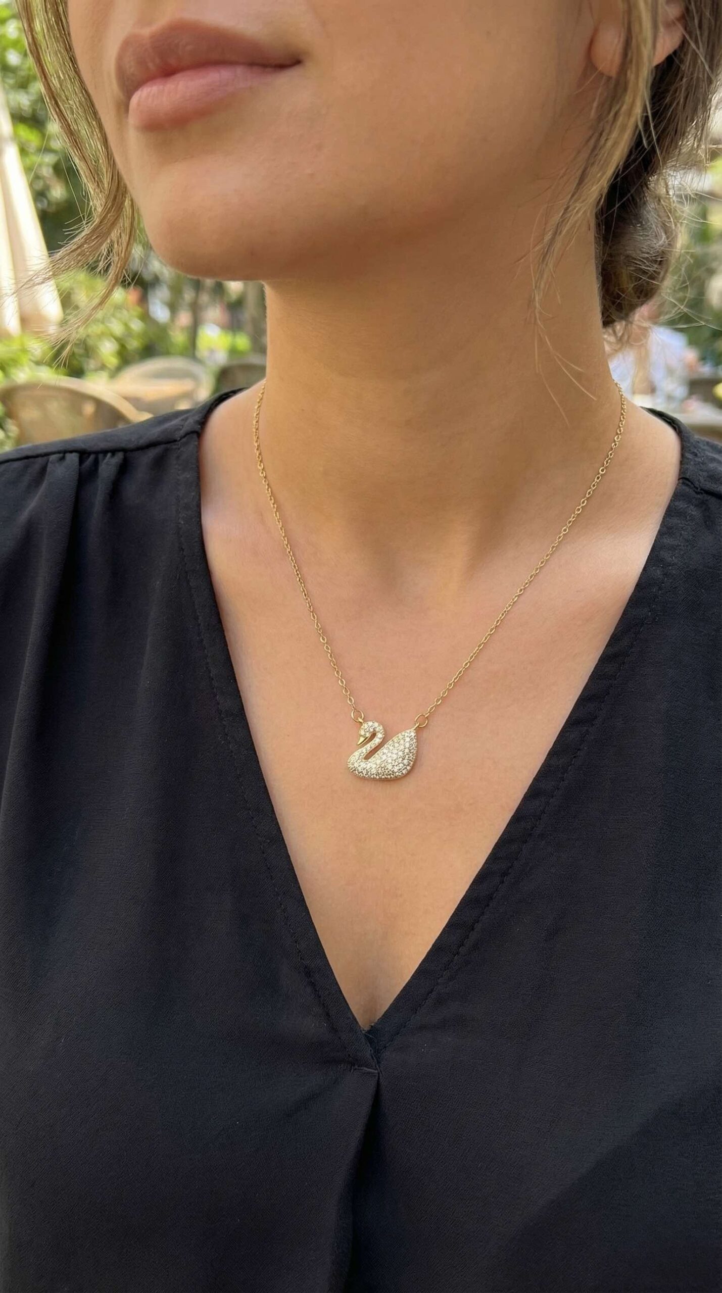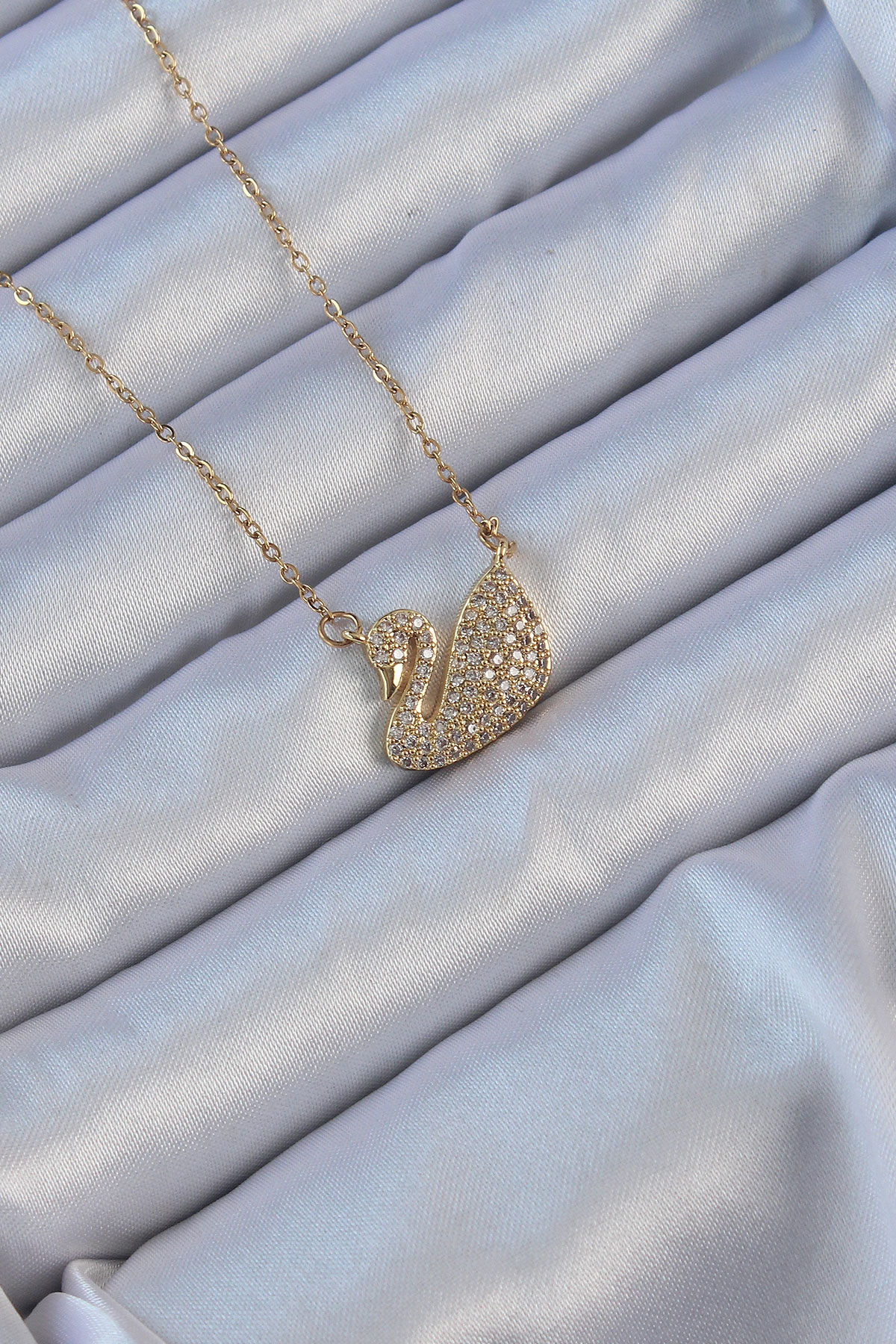 316L Çelik Zincir Altın Renk Zirkon Taşlı Kuğu Kolye
