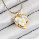 316L Çelik Zincir Beyaz Sanatsal Portre İnci Detaylı Papatya Figürlü Kalp Model Gold Renk Kadın Kolye