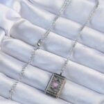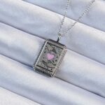 316L Çelik Zincir Eskitme Gümüş Renk Pembe Mineli Kalp Figürlü Tarot Kolye