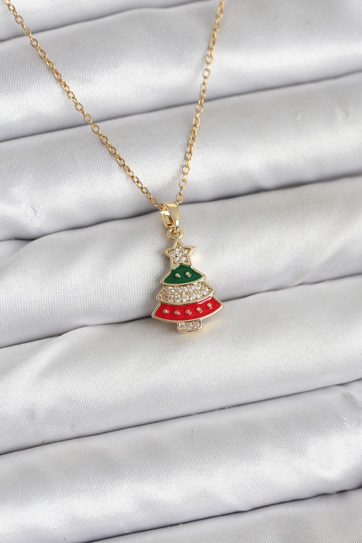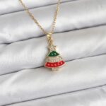 316L Çelik Zincir Gold Ren Çam Ağacı Model Zirkon Taşlı Yılbaşı Temalı Kadın Kolye
