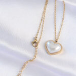 316L Çelik Zincir Gold Renk Beyaz Taşlı Bubble Kalp Kolye
