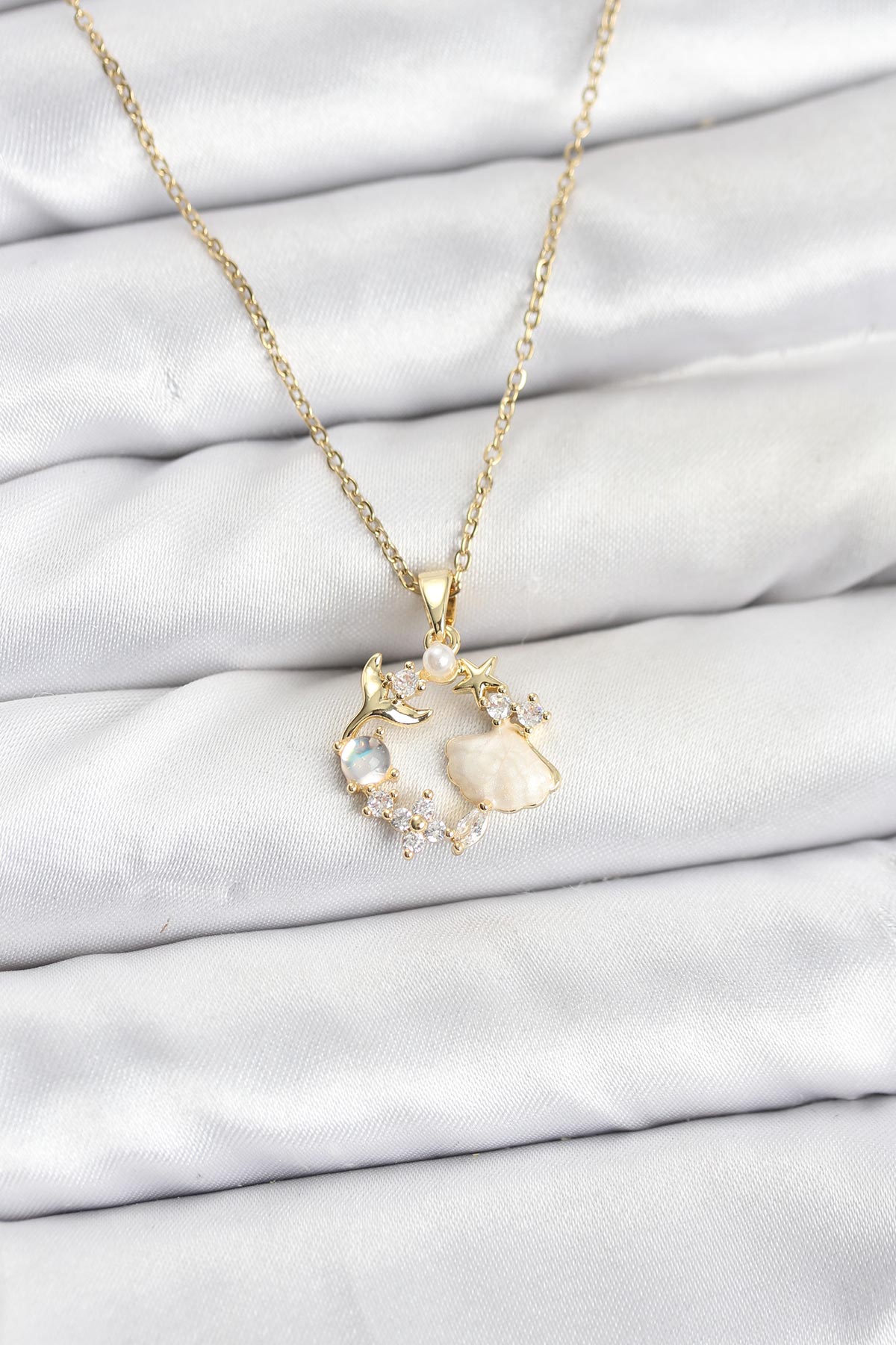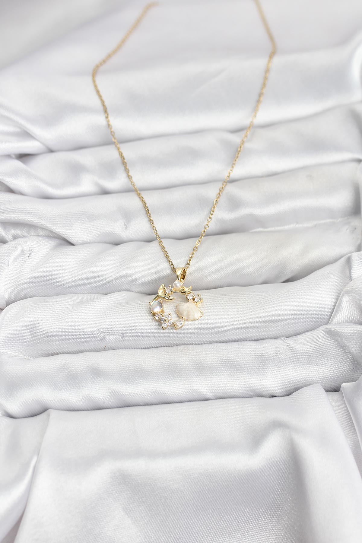 316L Çelik Zincir Gold Renk Deniz Tema Model Zirkon Taşlı Kadın Kolye