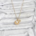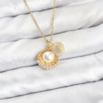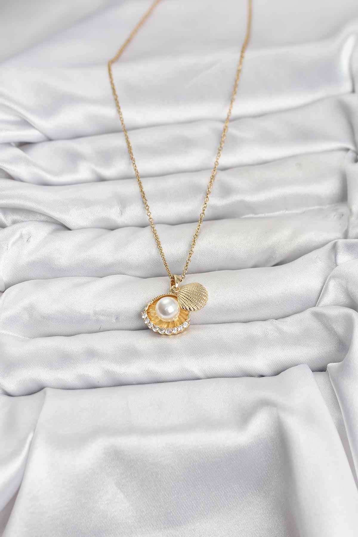 316L Çelik Zincir Gold Renk İncili Deniz Kabuğu Model Zirkon Taşlı Kadın Kolye