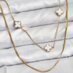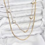 316L Çelik Zincir Gold Renk İtalyan Zincirli Yonca Model Kadın Kolye