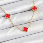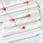 316L Çelik Zincir Gold Renk Kırmızı Baby Boy Yonca Kadın Kolye