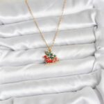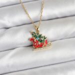 316L Çelik Zincir Gold Renk Kızak ve Çam Ağacı Figürlü Yılbaşı Temalı Kadın Kolye