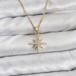 316L Çelik Zincir Gold Renk Kutup Yıldızı Model Zirkon Taşlı Kadın Kolye