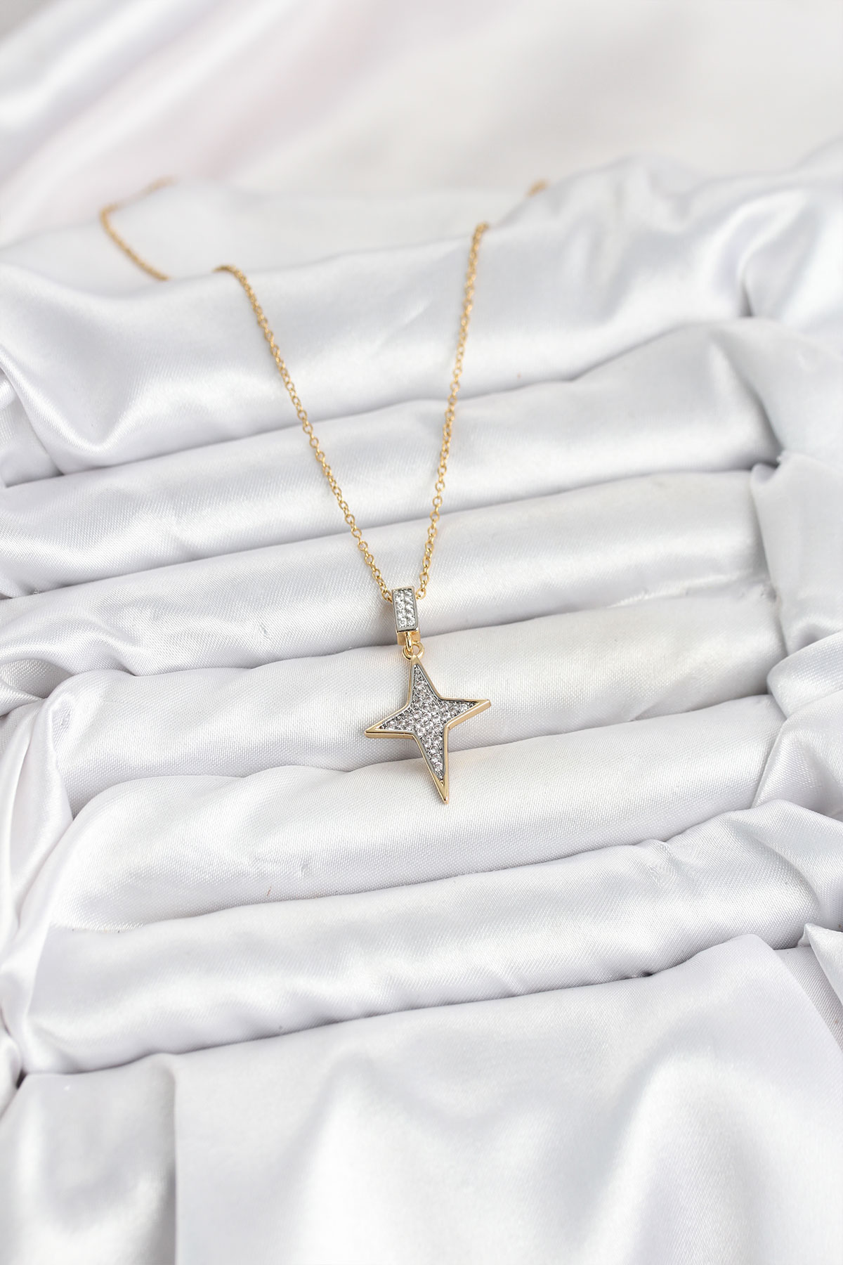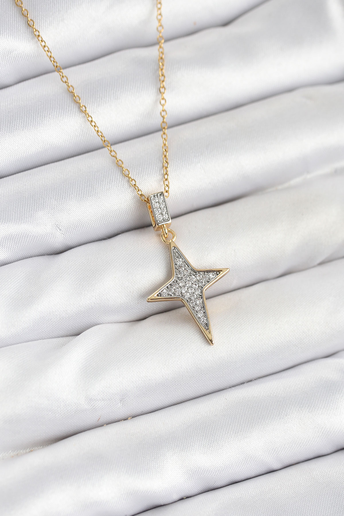 316L Çelik Zincir Gold Renk Kutup Yıldızı Model Zirkon Taşlı Kadın Kolye