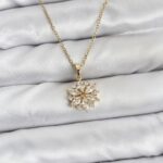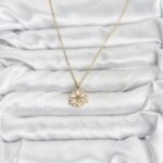 316L Çelik Zincir Gold Renk Lotus Model Zirkon Taşlı Kadın Kolye