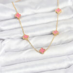 316L Çelik Zincir Gold Renk Pembe Baby Boy Yonca Kadın Kolye