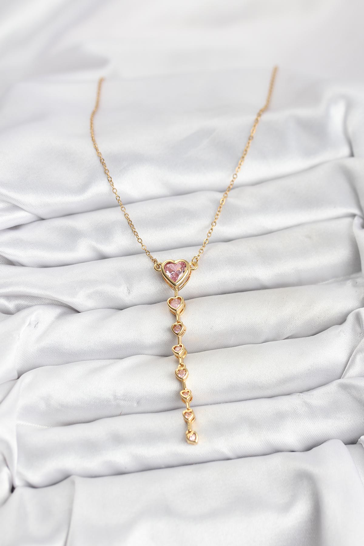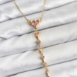 316L Çelik Zincir Gold Renk Pembe Kalp Kadın Kolye