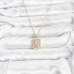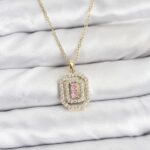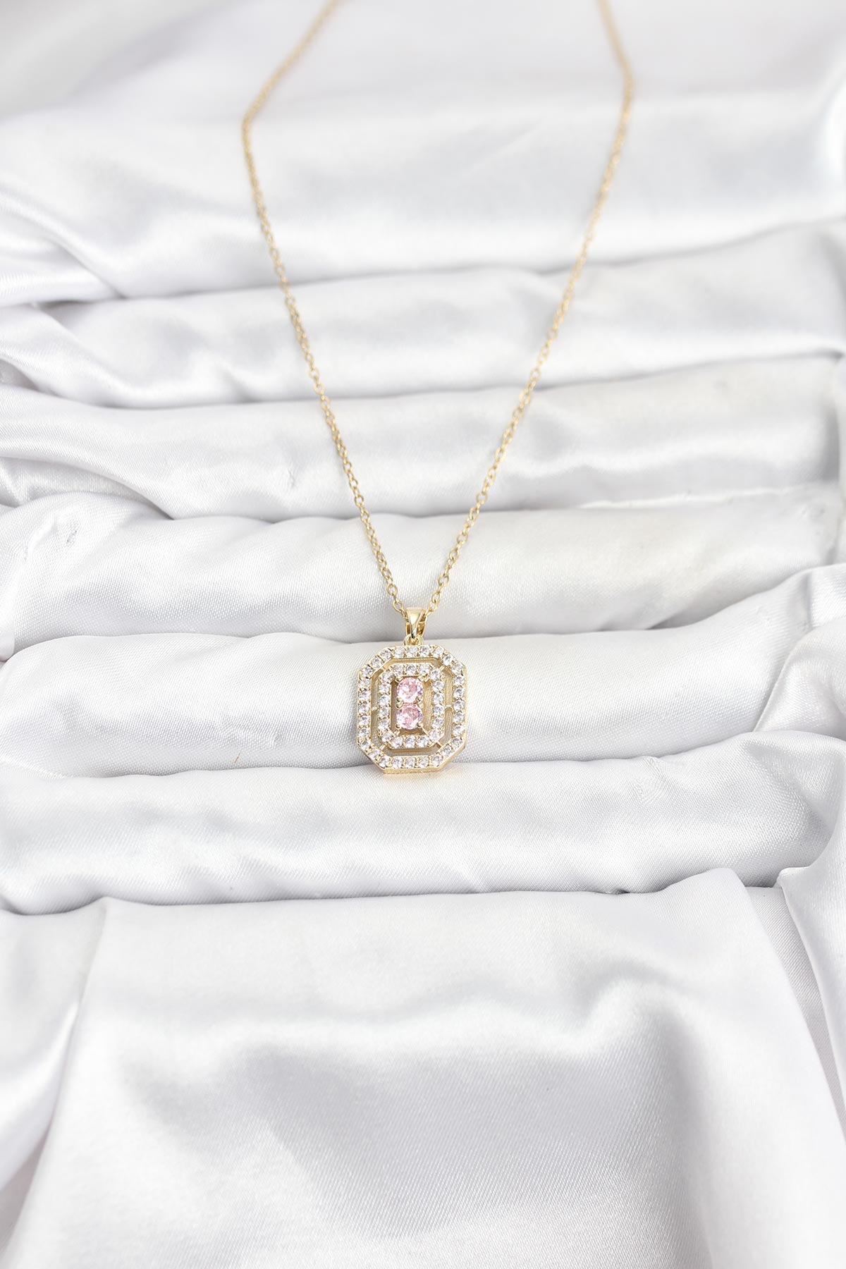 316L Çelik Zincir Gold Renk Plaka Model Zirkon Taşlı Kadın Kolye