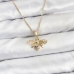 316L Çelik Zincir Gold Renk Sinek Model Zirkon Taşlı Kadın Kolye