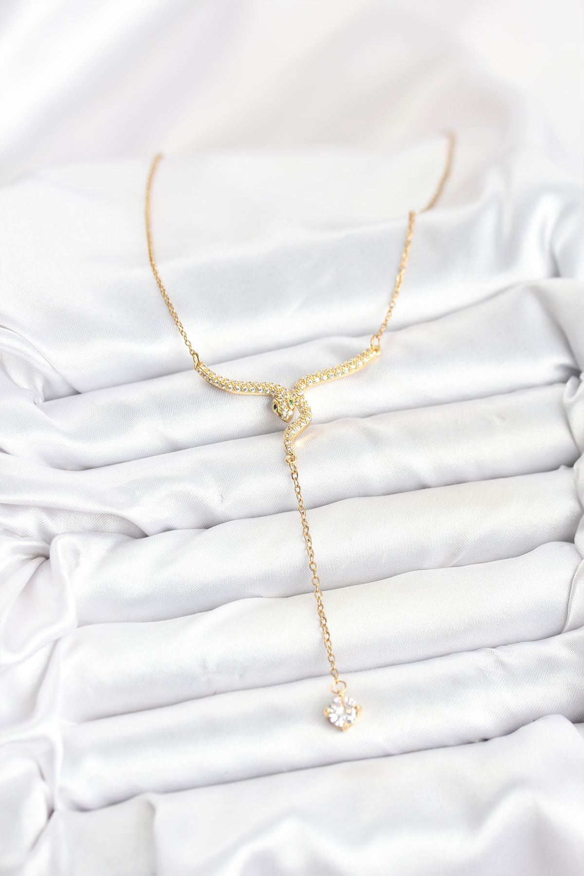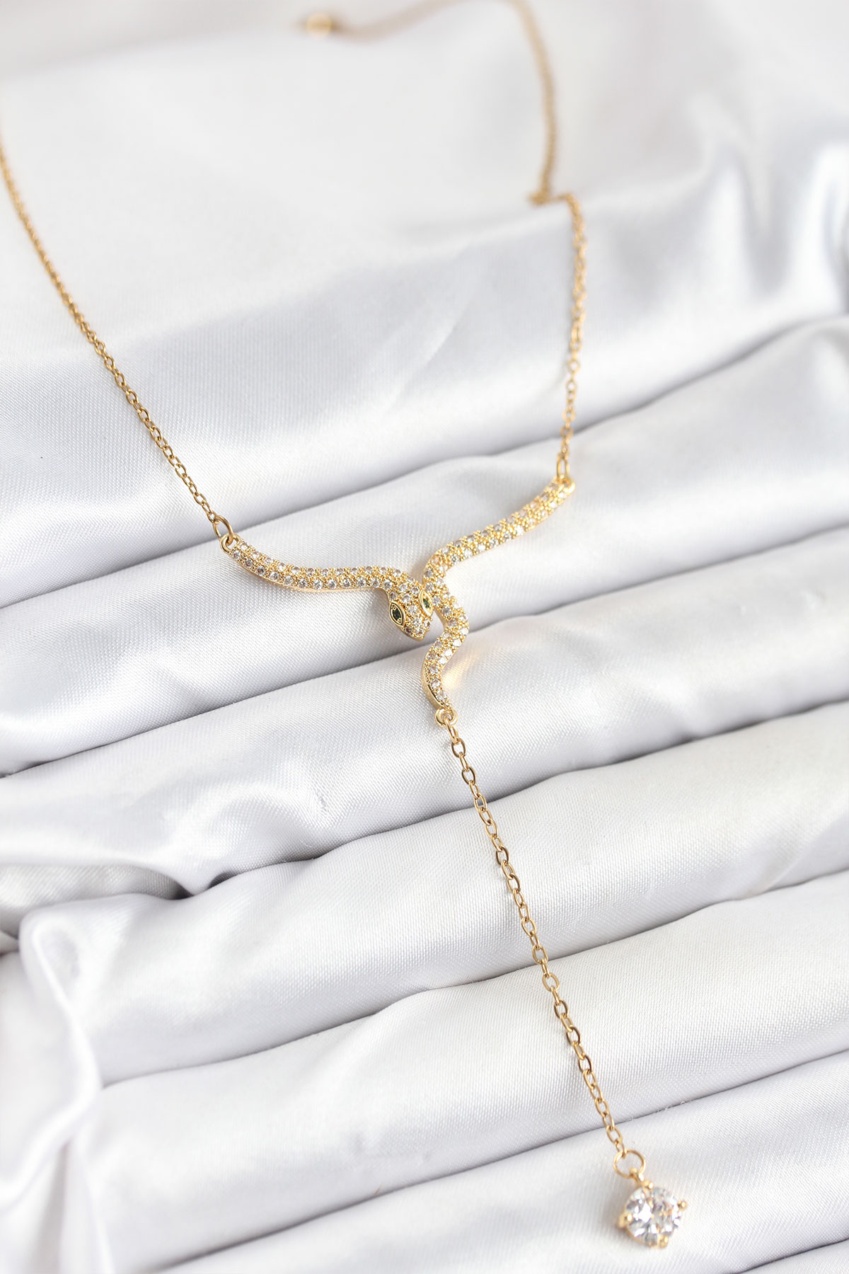 316L Çelik Zincir Gold Renk Yılan Model Y Kolye