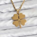 316L Çelik Zincir Gold Renk Yonca Model 60 cm Kadın Kolye