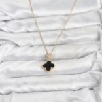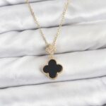 316L Çelik Zincir Gold Renk Yonca Model Zirkon Taşlı Kadın Kolye