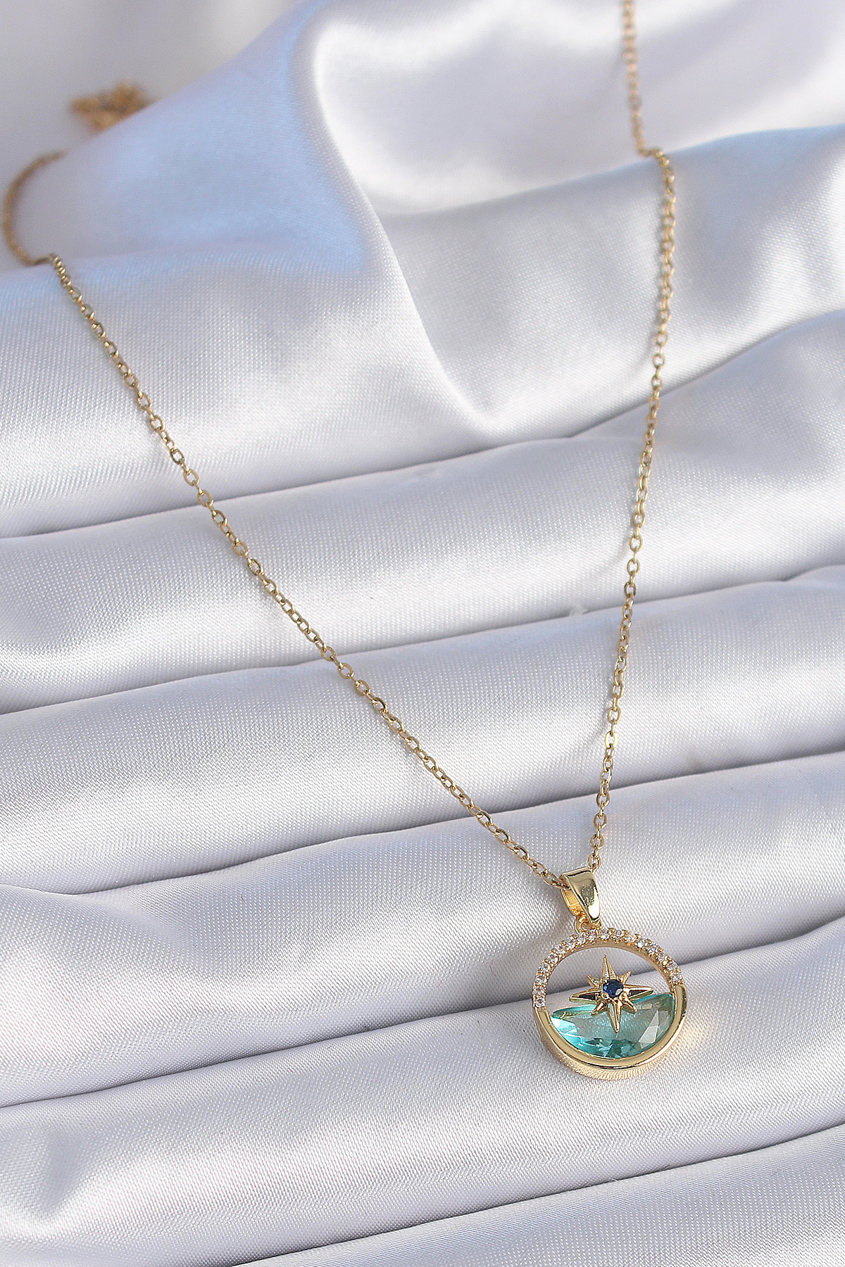 316L Çelik Zincir Gold Renk Zirkon Taşlı Deniz Görünüm Kutup Yıldız Model Kadın Kolye