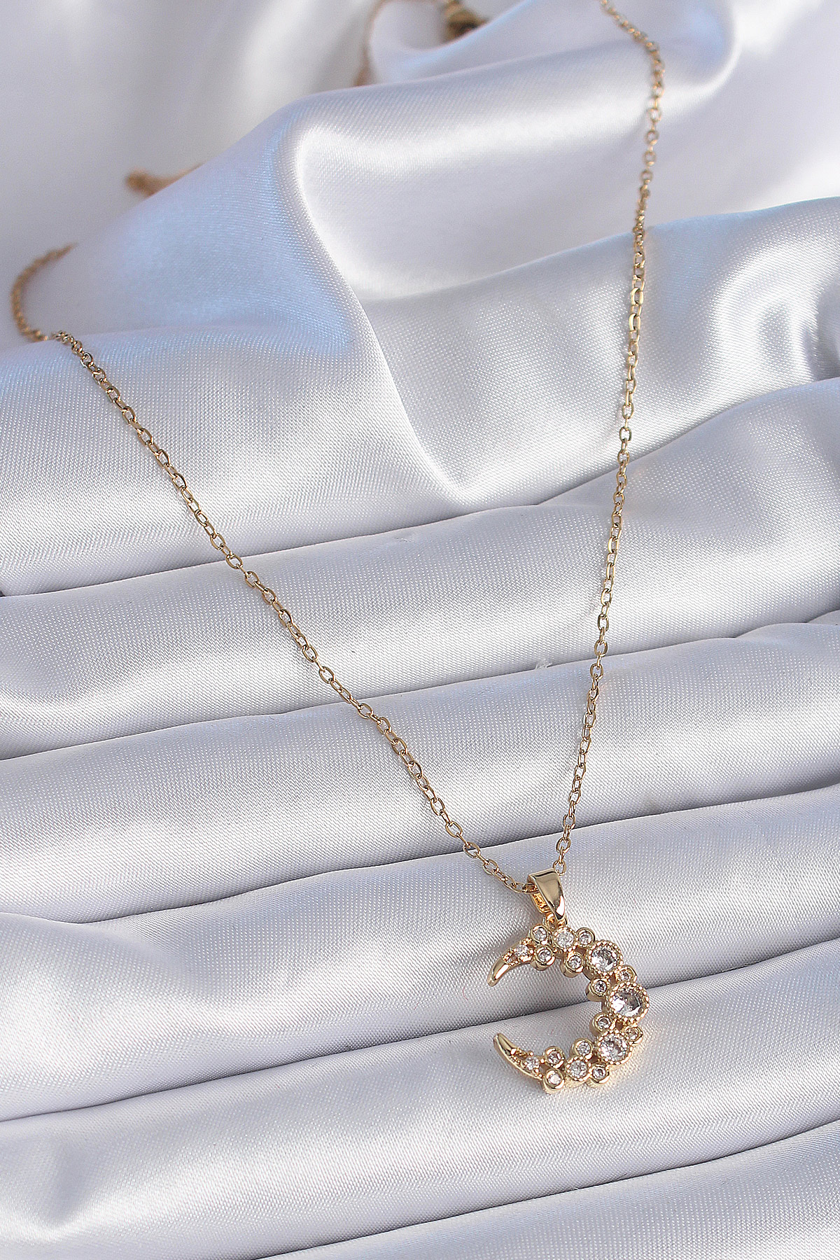 316L Çelik Zincir Gold Renk Zirkon Taşlı Hilal Model Kadın Kolye