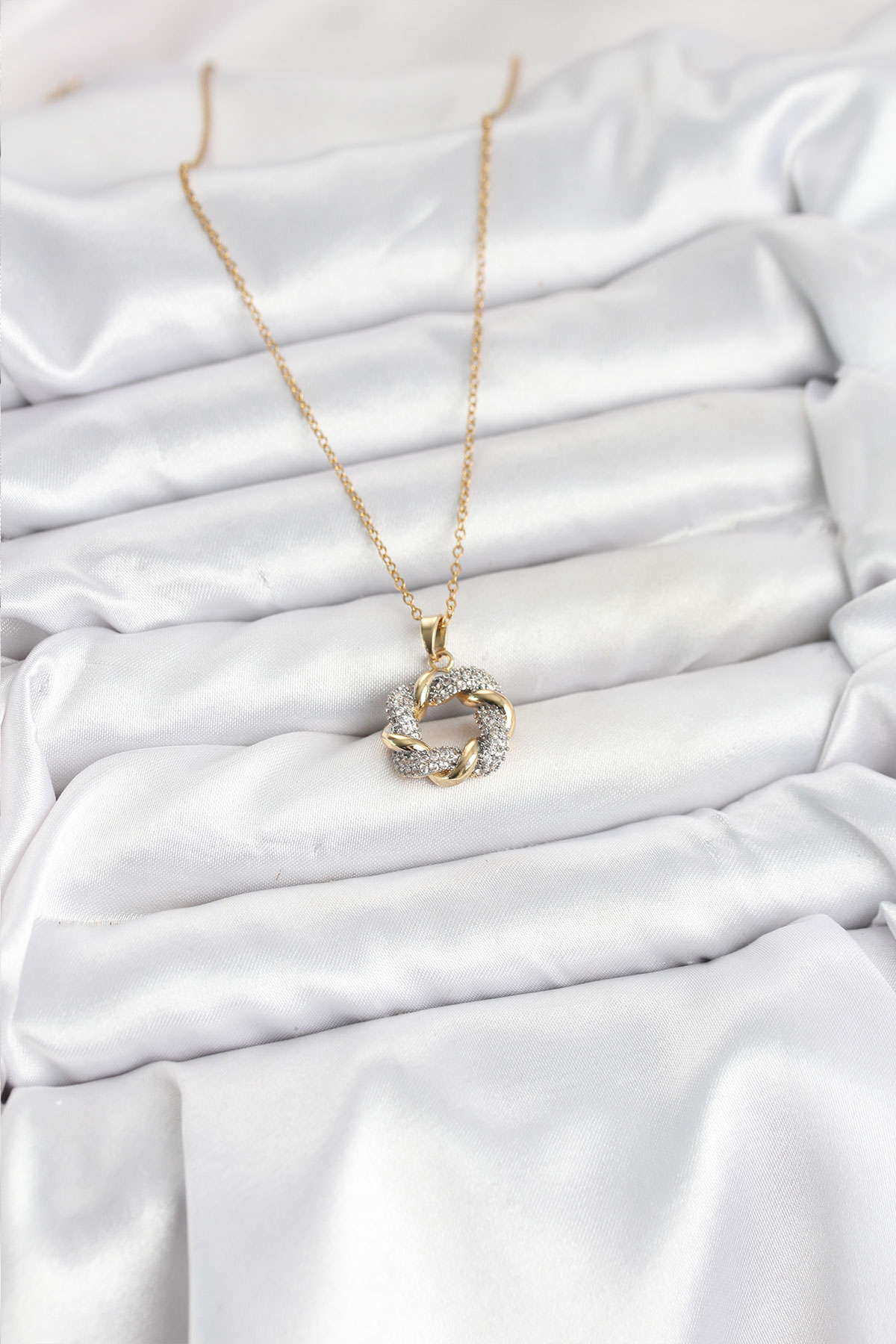 316L Çelik Zincir Gold Renk Zirkon Taşlı Sarmal Model Kadın Kolye