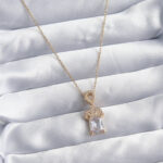 316L Çelik Zincir Gold Renk Zirkon Taşlı Taç Model Kadın Kolye