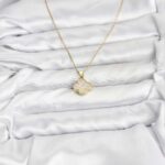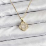 316L Çelik Zincir Gold Renk Zirkon Taşlı Yonca Model Kadın Kolye
