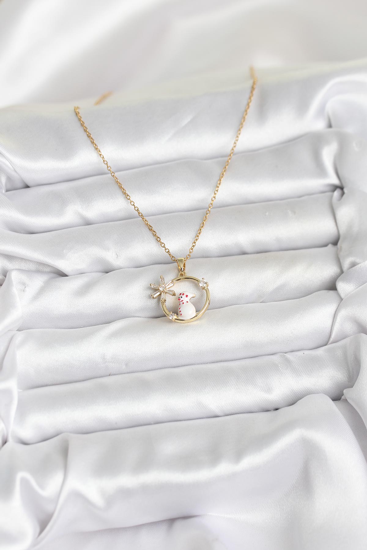 316L Çelik Zincir Gold Zirkon Taşlı Yılbaşı Temalı Kadın Kolye