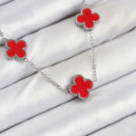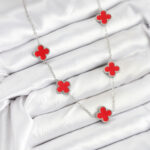 316L Çelik Zincir Gümüş Kırmızı Renk Yonca Kadın Kolye