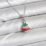 316L Çelik Zincir Gümüş Ren Çam Ağacı Model Zirkon Taşlı Yılbaşı Temalı Kadın Kolye