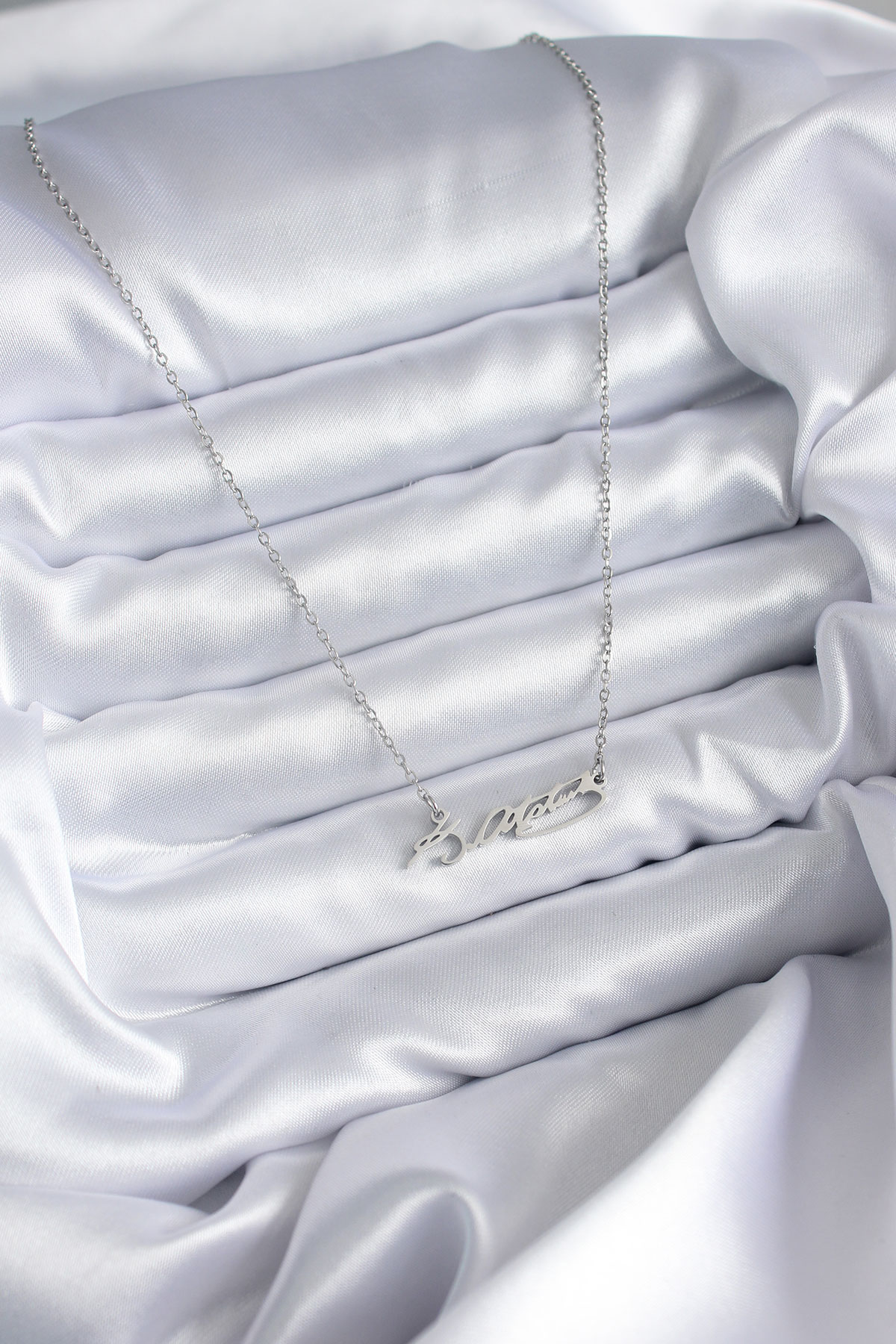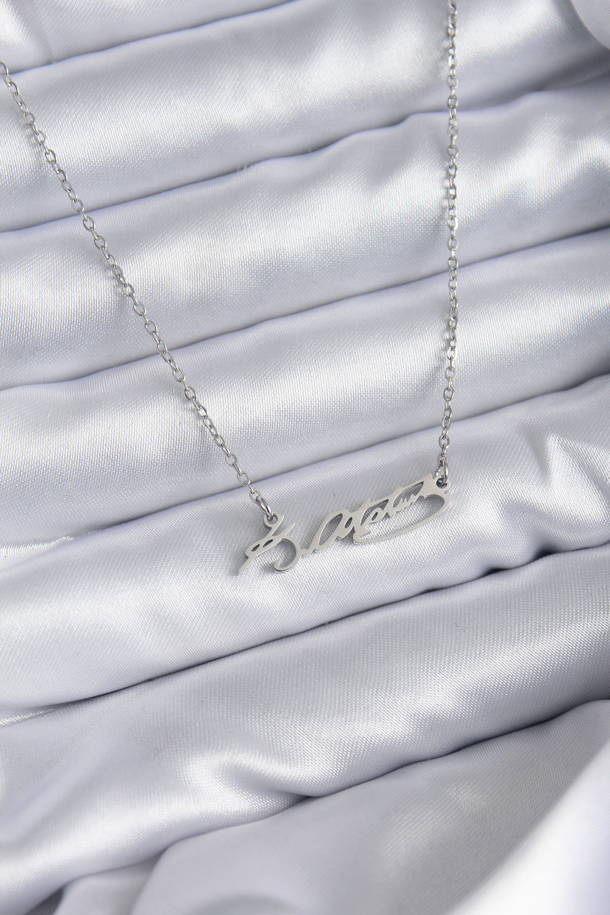 316L Çelik Zincir Gümüş Renk Atatürk İmza Figür Kadın Kolye