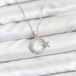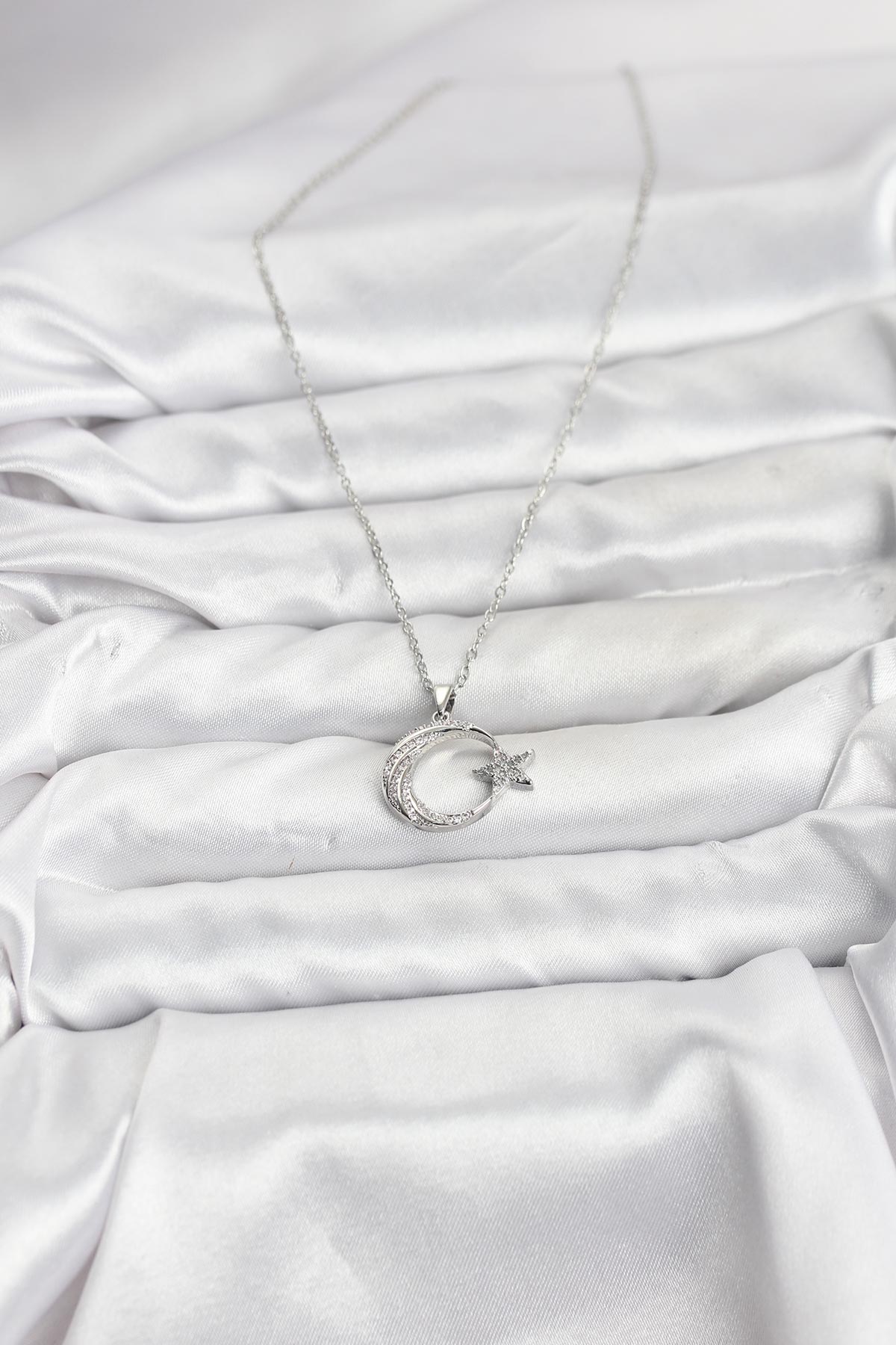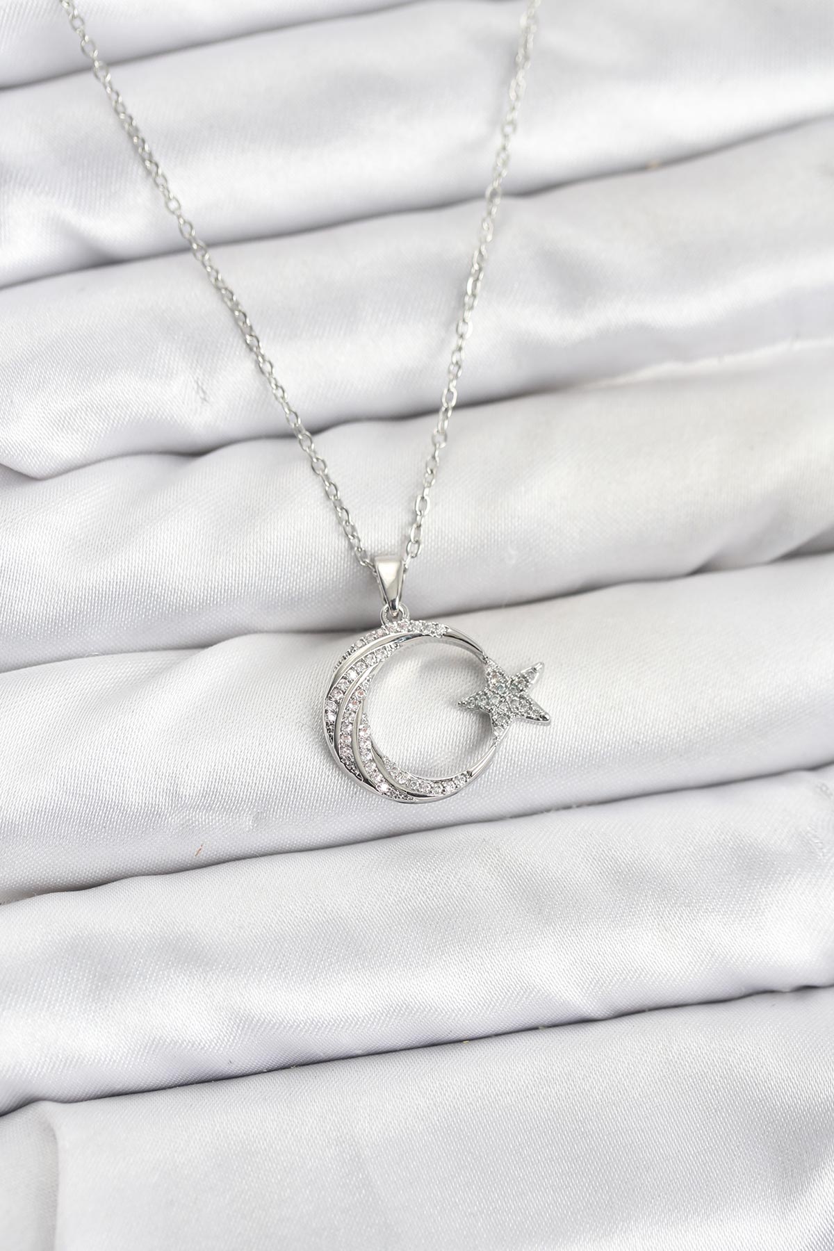 316L Çelik Zincir Gümüş Renk Ay Yıldız Model Zirkon Taşlı Kadın Kolye
