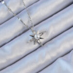 316L Çelik Zincir Gümüş Renk Baget Taşlı İnci Detay Kutup Yıldızı Kolye