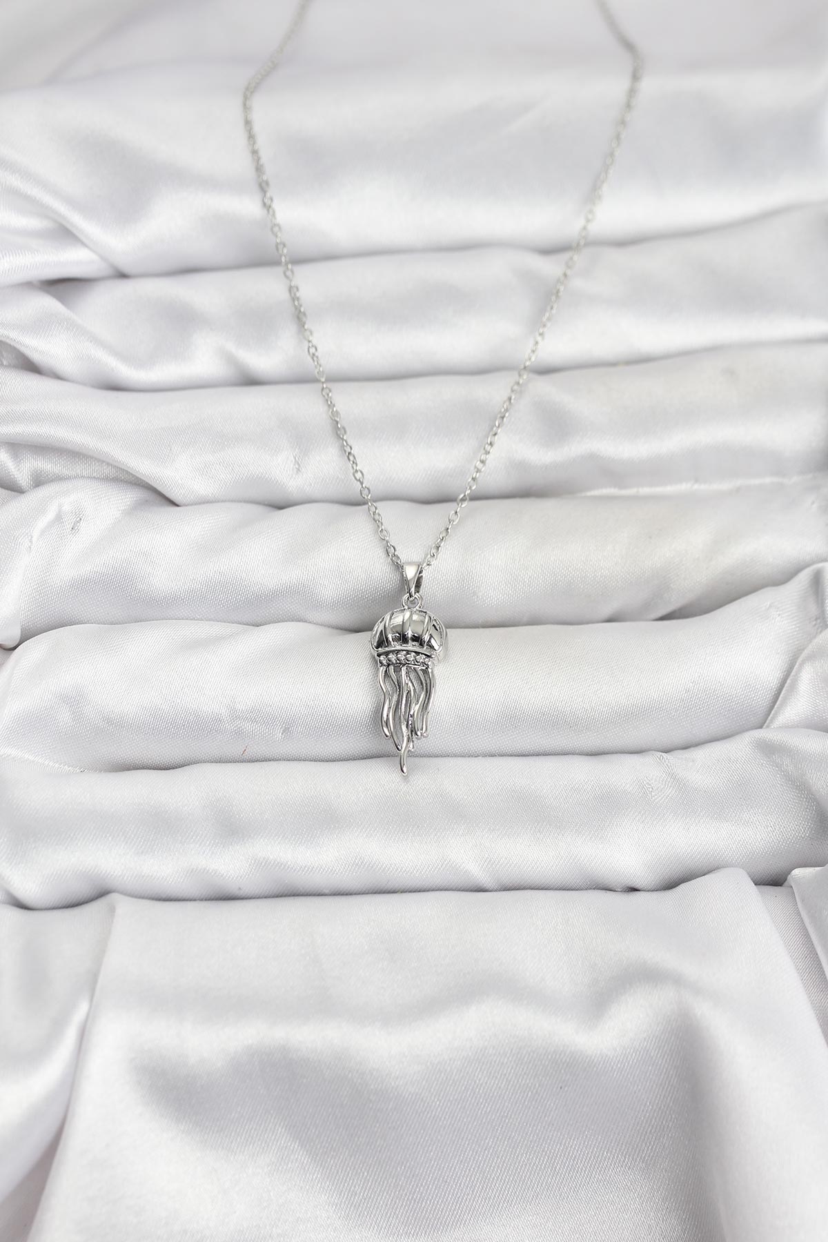 316L Çelik Zincir Gümüş Renk Deniz Anası Model Zirkon Taşlı Kadın Kolye