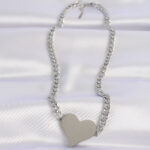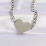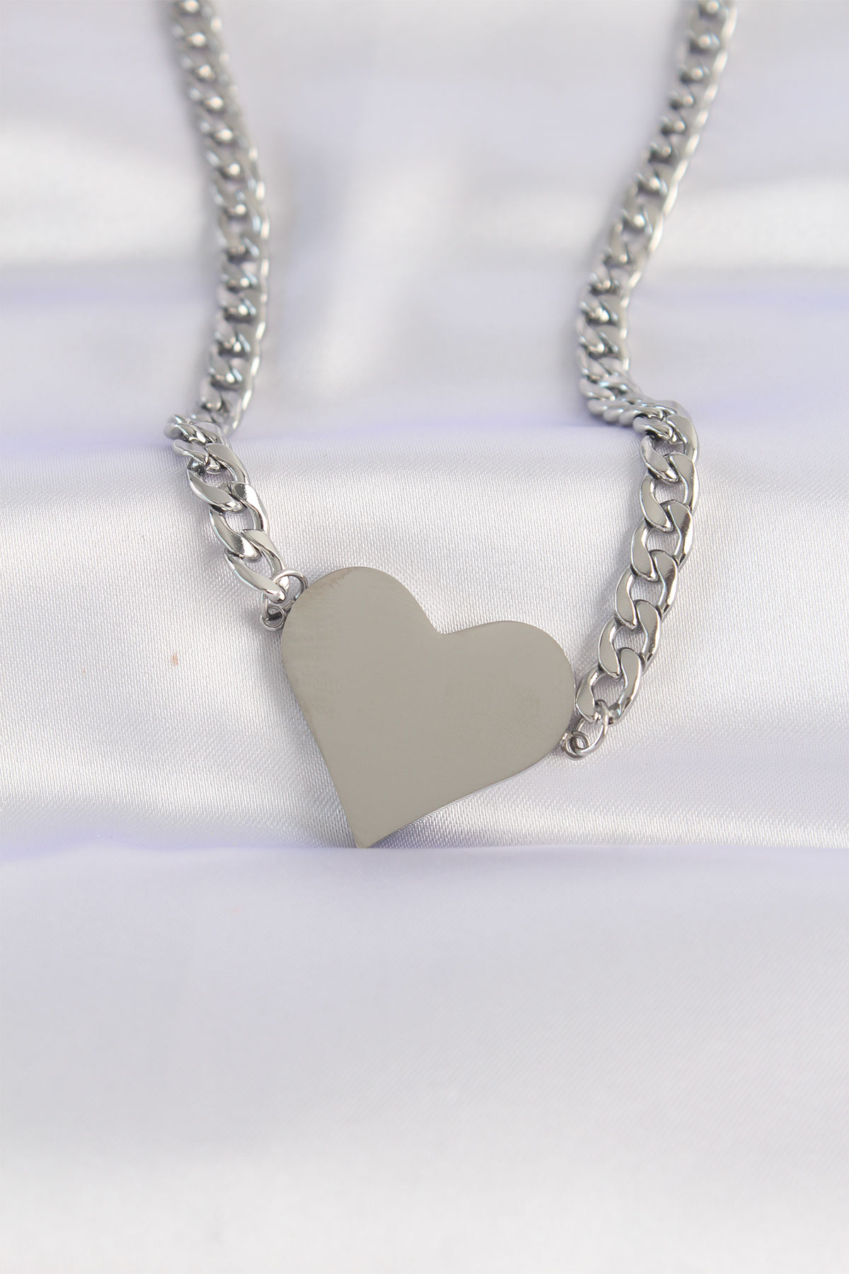 316L Çelik Zincir Gümüş Renk Düz Plaka Kalp Kolye