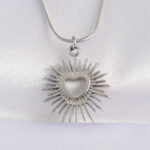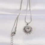 316L Çelik Zincir Gümüş Renk Kalp Güneşi Tasarımlı Kolye