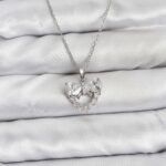 316L Çelik Zincir Gümüş Renk Kalp ve Fiyonk Model Zirkon Taşlı Kadın Kolye