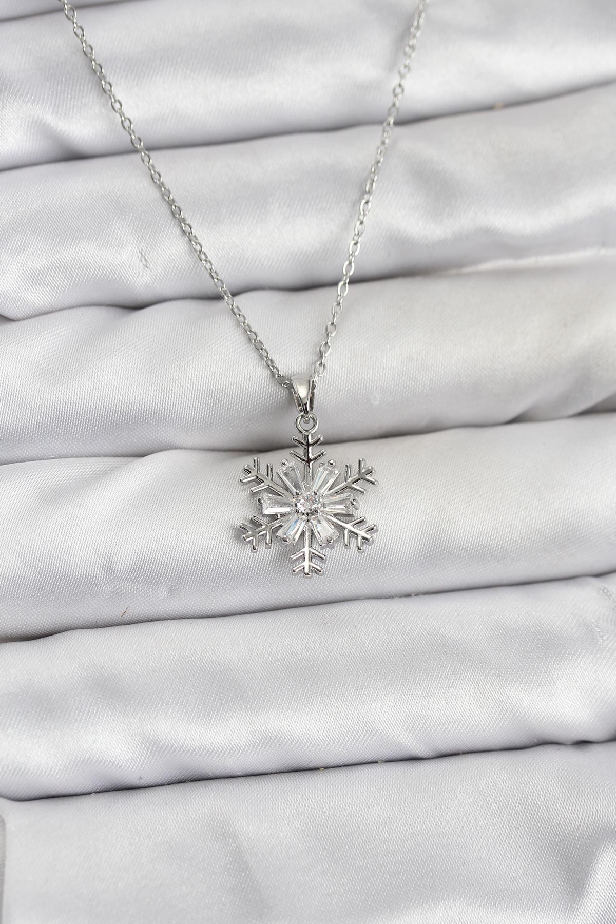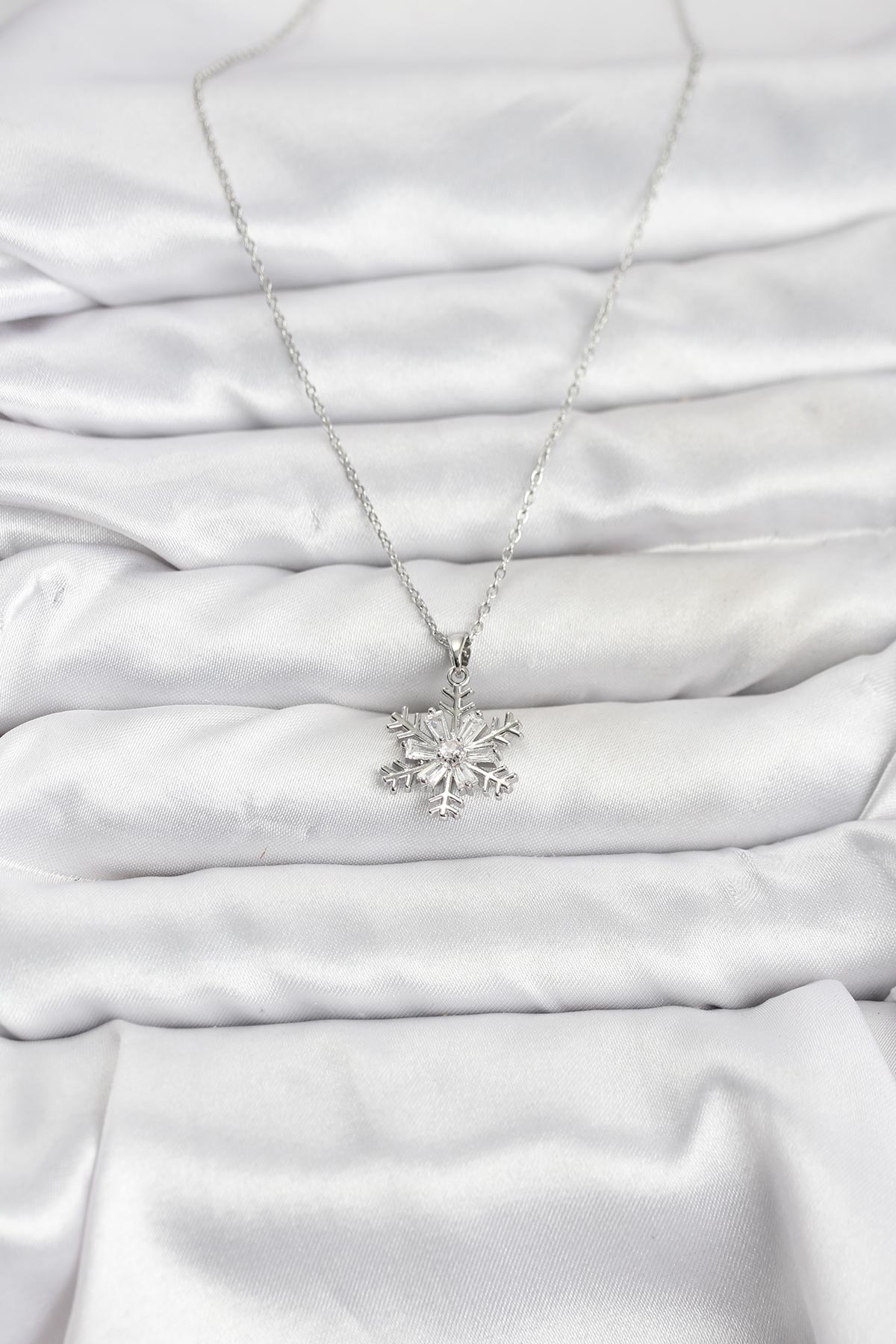 316L Çelik Zincir Gümüş Renk Kar Tanesi Model Zirkon Taşlı Kadın Kolye