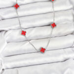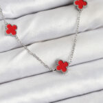 316L Çelik Zincir Gümüş Renk Kırmızı Baby Boy Yonca Kadın Kolye