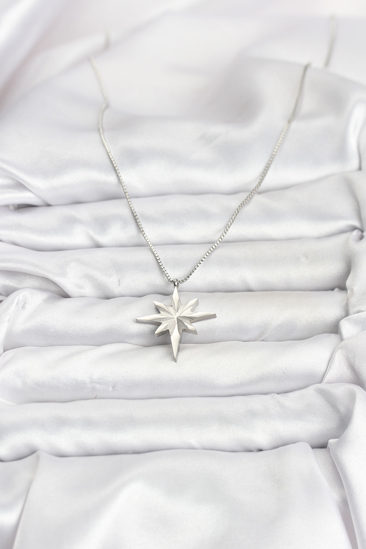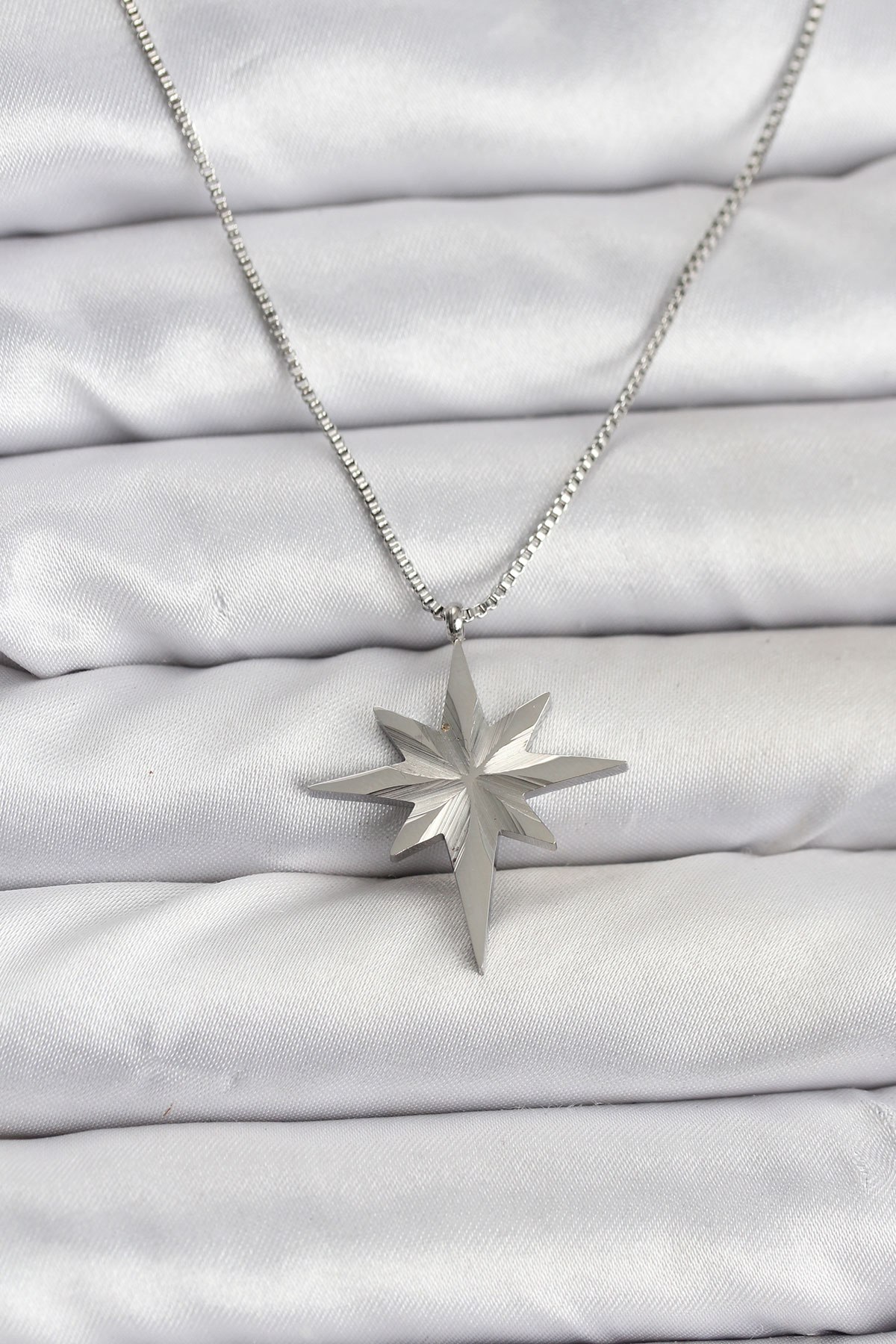 316L Çelik Zincir Gümüş Renk Kutup Yıldızı Model 60 cm Zincir Kadın Kolye